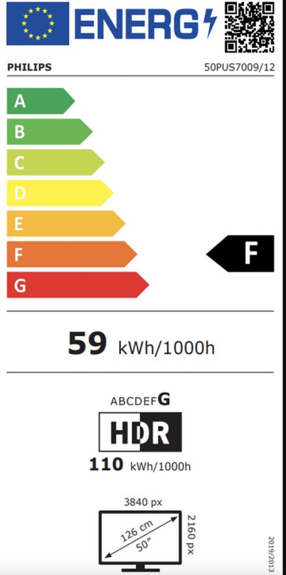 De Philips 50PUS7009 heeft een energielabel van F volgens de nieuwe 2021 normen. Dit betekent dat het energieverbruik relatief hoog is in vergelijking met andere televisies op de markt. Voor consumenten die milieubewust zijn, kan dit een belangrijk punt van overweging zijn. Het is altijd goed om de energiekosten en de milieu-impact van een apparaat in overweging te nemen voordat je een aankoop doet.